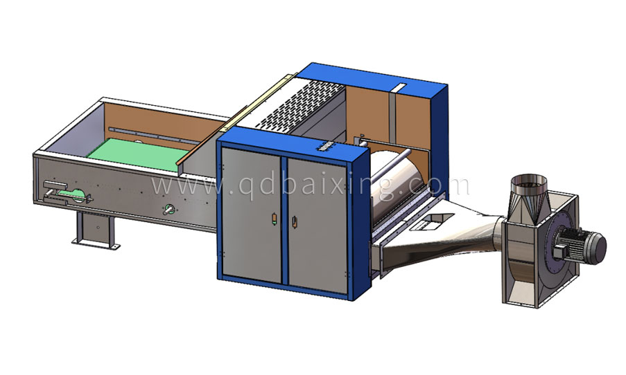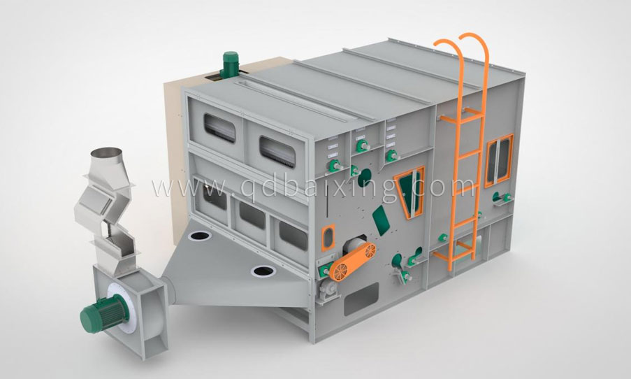 上儲棉箱兩側板為網眼板,目的是排風,但是纖維中的灰塵也被直接排出,影響車間空氣質量;雖然網眼板的孔很小,但也會有小短纖維從孔中飛出,直接排到車間